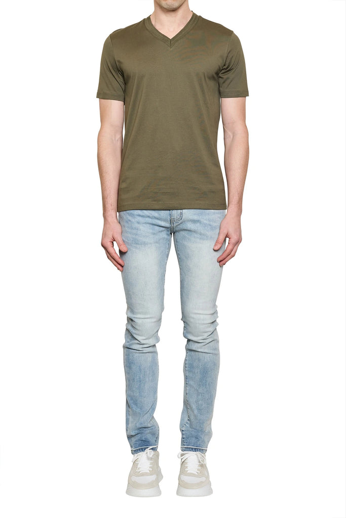 Elevate your everyday style with the Leo Fancy Trim V-Neck Tee. This sophisticated take on a classic tee features a subtle yet eye-catching trim detail along the neckline, adding a touch of refinement to your casual look. Crafted from premium fabric, the Leo Tee offers exceptional comfort and a flattering fit, making it a versatile essential for your wardrobe.
