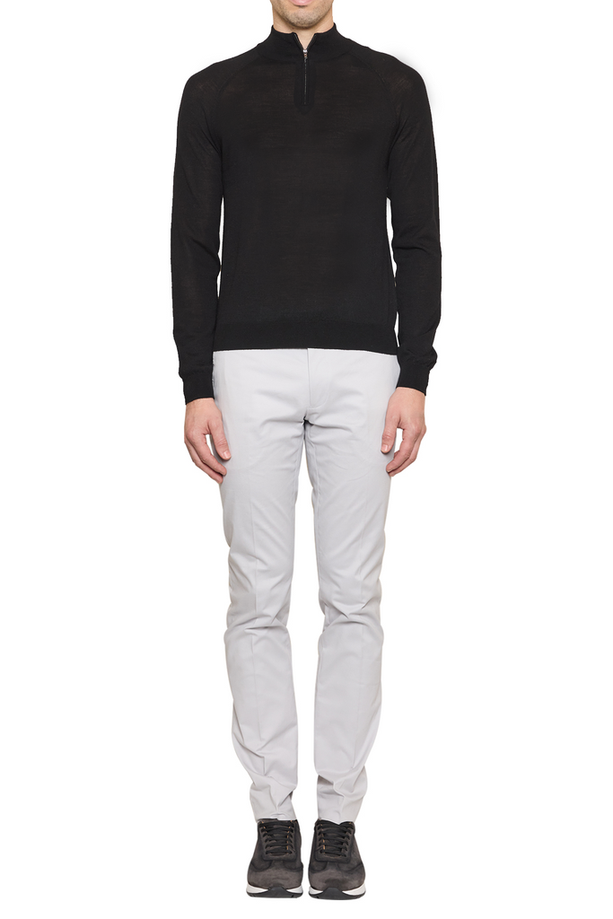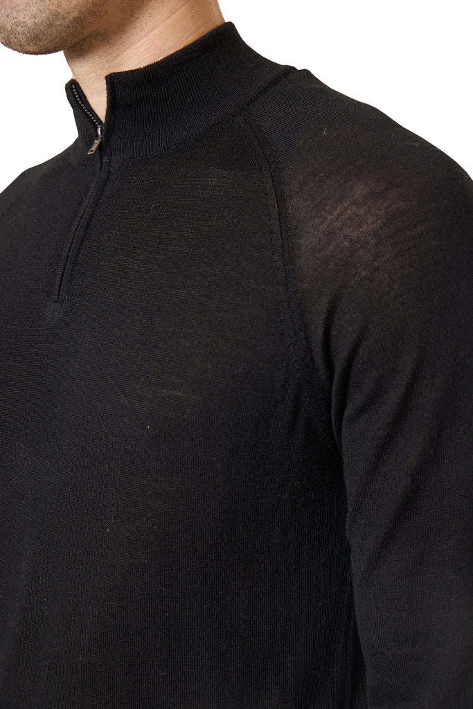 Luke Extra Fine Merino Zip Neck Knitted Jumper in Black