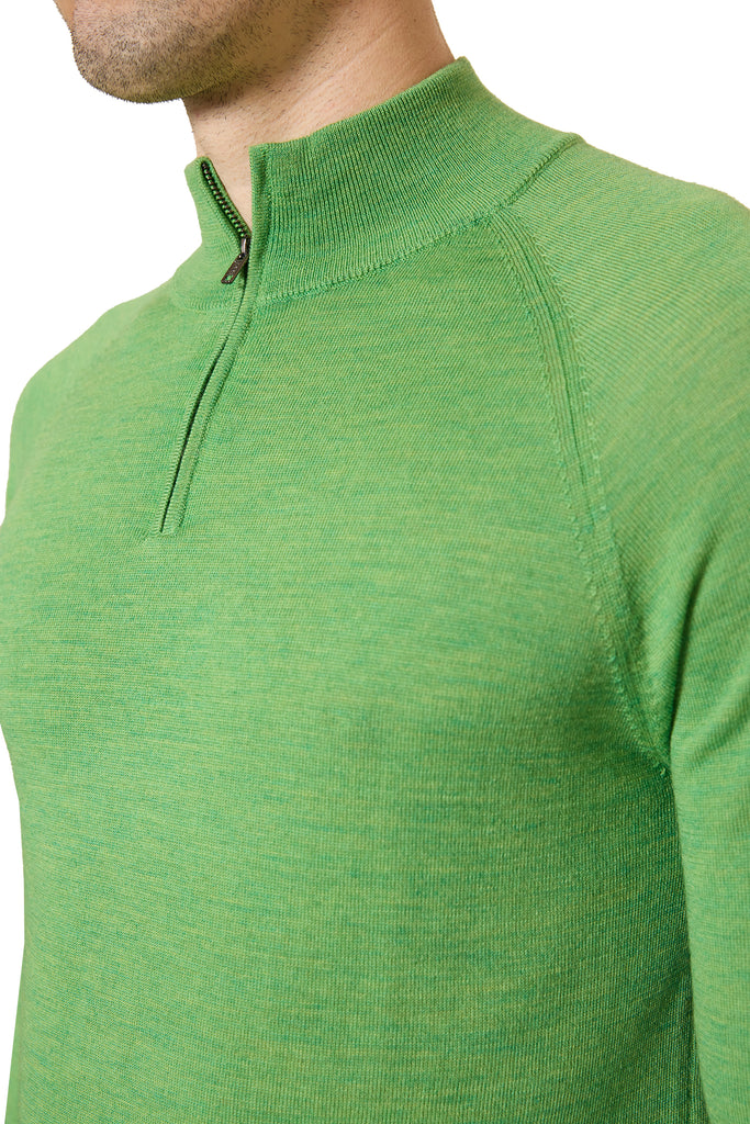 Luke Extra Fine Merino Zip Neck Knitted Jumper in Grass