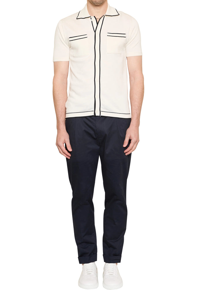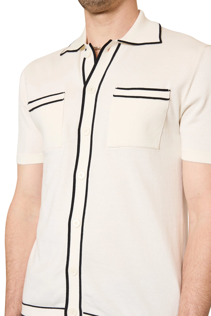 Milo Contrast Trim Knit Shirt in Ivory/Black